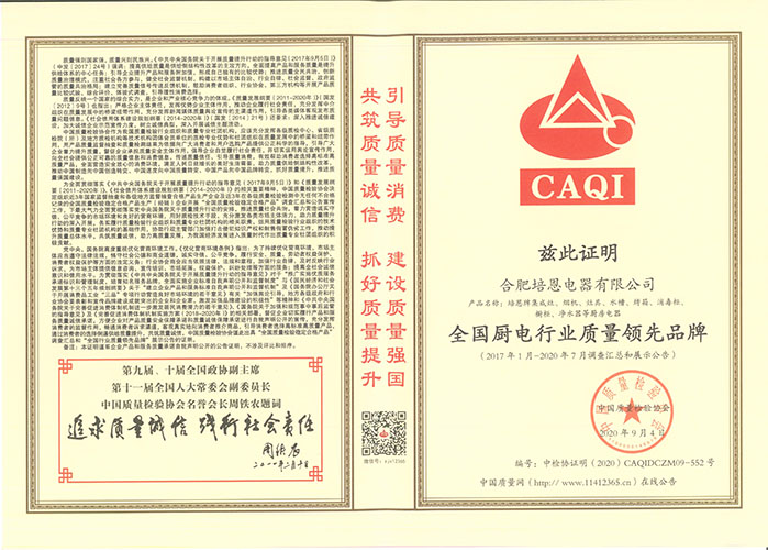 • 全國廚電行業質量領先品牌