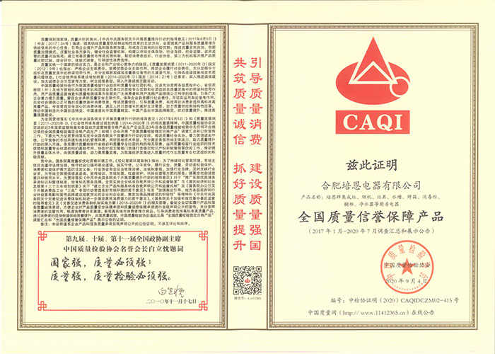 • 全國質量信譽保障產品