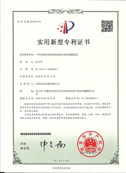 • 一種高效型低排放的側吸式抽油煙集成灶